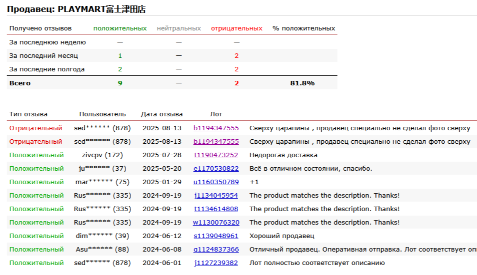 немного смекалки, рейтинг на аукционе еще работает по логину, там есть ссылка на лоты Yahoo!オークション - ブランドショップTAKEICHIさんの評価一覧